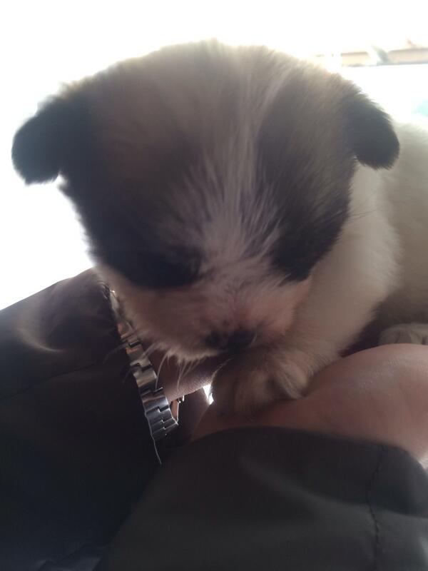 くーに持ってきたキャベツの芯をやって、賞味期限切れた食パンを少し子犬にやったら食ったよ!!!かわいい!!!!